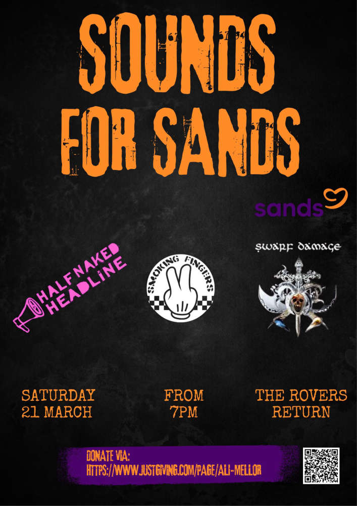 This Saturday (21 March) three local bands - Smoking Fingers, Swarf Damage and Half Naked Headline - will be playing a special 'Sounds for Sands' fundraiser at the Rovers Return pub in Douglas.